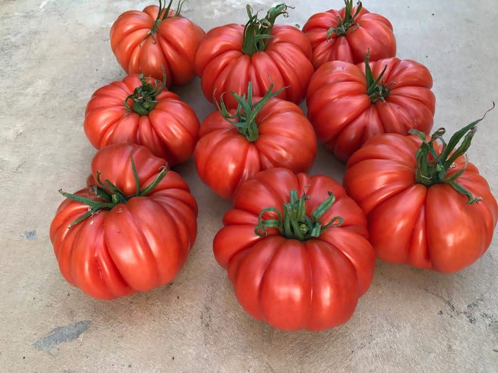 INDETERMINATE tomato of the BEEF type, with a flattened and softly rounded shape, and between 360-380 g of average weight. The fruit is almost multilocular and almost all meat and with a great uniformity in both shapes and weights. The plant is of medium vigor and light color.