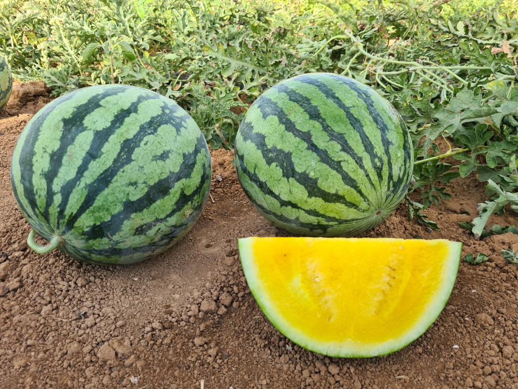 YELLOW FLESH TRIPLOID watermelon. Noted for its great organoleptic quality and resistance to over-ripening. Recommended in early plantings where varieties of good size and productive