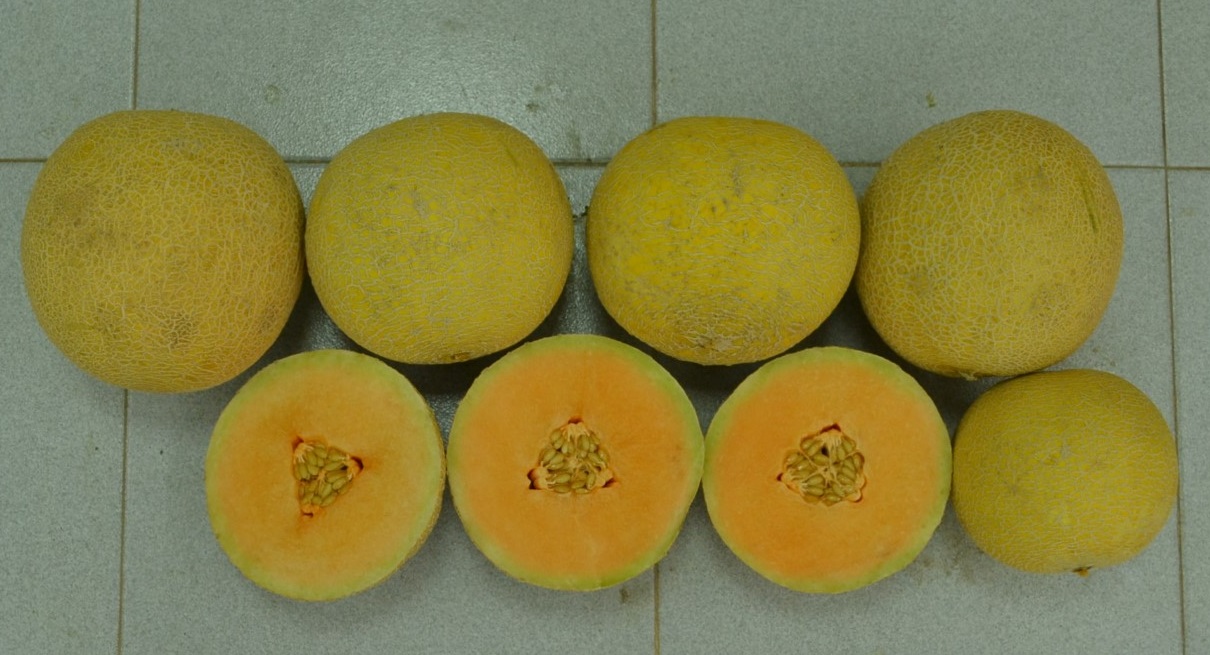 New in the GALIA market with ORANGE flesh. Round, slightly flattened fruit of 1.5 kg medium weight and deep orange flesh. Abundant and intense netting. It stands out for its high brix of 14.5 º and the uniformity in production. It develops a very vigorous, dark and very resistant to powdery mildew plant.