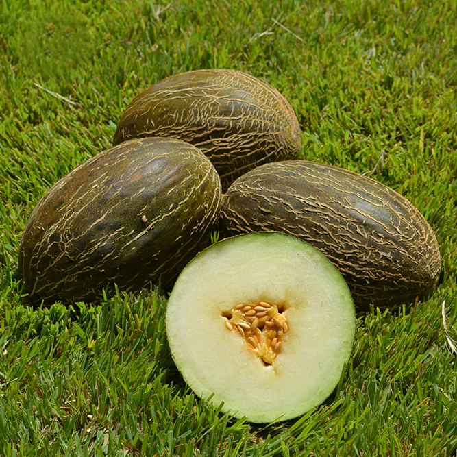 Hybrid melon of the GALIA type with vigorous plants and easy setting. The fruits are round and turn deep yellow at full maturity. Fine and dense writing. Average weight from 1.6 to 2.0 kg. Light green color and very sweet pulp. Suitable for greenhouse in early plantings and cultivation in open field.